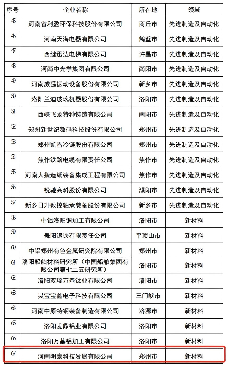 近日,河南省科技廳、省發(fā)展改革委、省財政廳、省稅務(wù)局對2024年度河南省創(chuàng)新龍頭企業(yè)名單進行公示,河南明泰科技發(fā)展有限公司(以下簡稱“明泰科技”) 成功入選2024年度河南省創(chuàng)新龍頭企業(yè)名單。