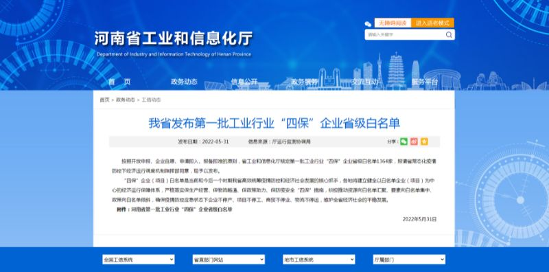 | 河南省第一批工業(yè)行業(yè)“四保”企業(yè)省級(jí)白名單 | ||